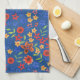 Chic Retro Floral Miniprint on Blue Kitchen Towel