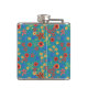 Chic Retro Floral Miniprint on Teal Hip Flask