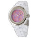 A chic Women's White Rhinestone Wrist Watch, with a pretty floral mini-print pattern on a French Navy Blue background. Part of the Posh & Painterly 'Granny Print' collection, this hand-painted paper collage pattern can be easily adjusted to fit any Wrist Watch.