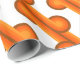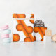 Contemporary modern classic return wrapping paper with white, light and dark orange, and dark brown coloured abstract curl waves pattern. Available on products such as wrapping and tissue paper, return address labels, gift tags, bags and favour boxes, stickers and ribbons.