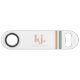 A minimalist monogram design with large typography initials in a classic font with your name below and chic retro rainbow coloured stripes.