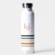 A minimalist monogram design with large typography initials in a classic font with your name below and chic retro rainbow coloured stripes.