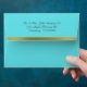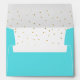 Elegant robin's egg blue wedding invitation envelope, with graphics of a gold tone stripe along the back flap edge and a gold and white polka dot pattern, on the inside. Personalise the dark grey return address, on the back flap, for your special day. Matching wedding invitations and products are available.