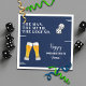 An elegant modern design featuring two beer glasses, rolling dices and a funny saying for the birthday person. Customize the details for a unique and chic Birthday Celebration.