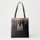 Chic Rose Gold Dripping Glitter Monogram Name Tote Bag