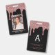 Girly Rose Gold Sparkle Glitter Drips Monogram Name Badge with fashion faux blush pink/rose gold glitter drips on a chic black background with your name, photo, and contact details. Add your business logo or other credentials on the back. Great for anyone who loves the luxury glam lifestyle. Perfect for your luxury esthetic! You're dripping in luxury - show it! Please contact us at cedarandstring@gmail.com if you need assistance with the design or matching products.