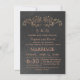 Chic Rose Gold Flourish Swirl Black Wedding Invite