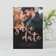 Chic Rose Gold Foil Brush Script Photo Save the Date announcement. Send your wonderful news in style with these modern announcements featuring stylish black and blush pink with a lux rose gold foil style text in a trendy handwritten brush stroke. Easily add your own photo and details!