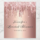 Chic Rose Gold Glitter Drips Script Bridal Shower Wine Label