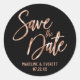 Chic Rose Gold Modern Typography Save the Date Classic Round Sticker