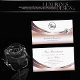 Luxurious and elegant business card design featuring rose gold colours decoration with a glamourous sparkling diamond and white background.