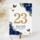 Chic Royal Blue Floral Gold Quinceañera Sweet 16 Table Number