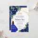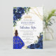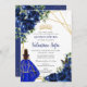 Chic Royal Blue Floral Princess Gold Quinceañera Invitation