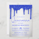 Chic Royal Blue Glitter Drips Silver Quinceañera Invitation