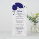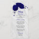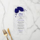 beautiful royal blue flowers and silver grey leaves elegant wedding menu.