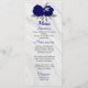 beautiful royal blue flowers and silver grey leaves elegant wedding menu.