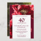 Chic Ruby Red Floral 40th Anniversary Photo Invitation