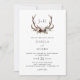 This chic rustic wedding invitation with antlers features the monogram initials of the bride and groom framed by stag antlers which are decorated with a watercolor burgundy floral bouquet. Please contact me through Zazzle Chat if you need design tweaks, more matching products, or other colorways.