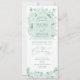 Elegant green and white wedding program featuring classy Chinoiserie botanical floral pattern