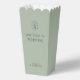 Delight wedding guests with a surprise midnight snack. This lovely monogrammed wedding favor popcorn box features couple names and monogram in a contemporary set of fonts against a sage green background. This item forms part of a full wedding suite which includes matching stationary items.