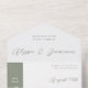 Not only will you love these sage green all in one wedding invitations, so will your guests. The modern design features a QR code that you will link to your wedding website. With this your guests will be able to RSVP online , which saves them time, while saving you money. With our easy to use templates, you can craft your perfect green and white wedding invites. These are stylish with contemporary typography.