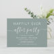 Chic sage green invitation for your wedding after party. "Happily Ever After Party" is written in a blend of simple white lettering and a modern white script with swashes.