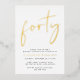 Elevate your 40th birthday party with this chic invitation featuring "forty" in a stylish script and your name in elegant serif typography, rendered in your choice of genuine gold, silver foil or rose gold foil, and the party details in simple, modern lettering.