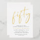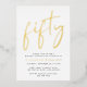 Chic 50th birthday party invitation featuring "fifty" in a stylish script and your name in elegant serif typography, rendered in your choice of genuine gold, silver foil or rose gold foil, and the party details in simple, modern lettering.