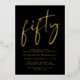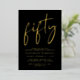 Chic black 50th birthday party invitation featuring "fifty" showcased in a stylish script, your name in elegant serif typography and the party details in simple, modern lettering, all rendered in your choice of genuine gold, silver foil or rose gold foil.