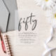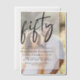 Elevate your 50th birthday party with this chic vellum paper invitation featuring "fifty" in a contemporary script, your name in classic serif typography and the party details in simple lettering, You can overlay this invitation on your photo for a sophisticated touch.