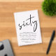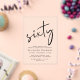 Chic clear acrylic invitation for your 60th birthday party featuring "sixty" in a large script, your name in elegant serif typography and the party details in simple, modern lettering,