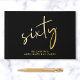 Elevate her 60th birthday party with this elegant black guestbook featuring real gold foil, "sixty" in a chic script and her name in modern lettering. Personalise your title on the spine and change the foil colour to silver or rose gold if desired.