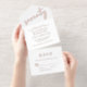 Elegant 70th birthday party all-in-one invitation with "seventy" showcased in a chic script, your name and "RSVP" in elegant serif typography and the party details in simple, modern lettering, all rendered in your choice of genuine gold, silver or rose gold foil. A tear-away RSVP postcard provides for a convenient envelope-free response from your guests.