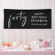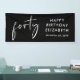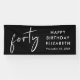 Chic black 40th birthday party banner and welcome sign with "forty" in a stylish white script and your name and the date in modern white lettering.