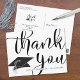 Custom graduation thank-you postcard personalised with the graduate's name and class year on the front along with a full-bleed over-sized THANK YOU title with a black and silver tassel graduation cap design. The opposite side offers the option to pre-print your thank-you message or opt to delete the sample text to leave the area blank for handwriting notes of appreciation. Contact the designer via Zazzle Chat or makeitaboutyoustore@gmail.com if you'd like this design modified, on another product or would like coordinating items.