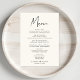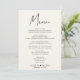 Chic light cream wedding reception dinner menu with "Menu" in a stylish modern script, your menu in simple typography, your names joined together by a heart and your reception date.