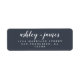 Chic, modern and simple wedding return address label with your names in white elegant hand written script calligraphy on a dark blue background. Simply add your names and address. Exclusively designed for you by Happy Dolphin Studio. If you need any help or matching products, please contact us at happydolphinstudio@outlook.com. We're happy to help you make your wedding the most beautiful day!