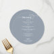Chic Script Dusty Blue Circle Menu Card For Plate