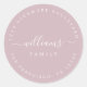 Chic, modern and simple family return address classic round sticker with your family name in white elegant script on a pastel purple background. Simply add your name and address. Exclusively designed for you by Happy Dolphin Studio. If you need any help or matching products please contact us at happydolphinstudio@outlook.com. We're happy to design the most beautiful personalised stationery for your family!