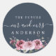 Chic Script Future Mr Mrs Burgundy Floral Blue Classic Round Sticker