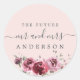Chic Script Future Mr Mrs Burgundy Floral Pink Classic Round Sticker