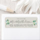 Chic, modern and simple wedding return address label with the text the future Mr and Mrs in off-black elegant script calligraphy and a stylish touch of green foliage on a grey background. Simply add your name and address. Exclusively designed for you by Happy Dolphin Studio. If you need any help or matching products please contact us at happydolphinstudio@outlook.com. We're happy to help you make your wedding the most beautiful day!
