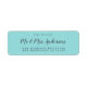 Chic, modern and simple wedding return address label with the text the future Mr and Mrs in off-black elegant script on a turquoise blue background. Simply add your name and address. Exclusively designed for you by Happy Dolphin Studio. If you need any help or matching products please contact us at happydolphinstudio@outlook.com. We're happy to help you make your wedding the most beautiful day!