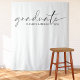 Chic minimal backdrop and photo wall prop for your graduation party featuring "graduate" in a modern script and the graduate's name and class year in simple typography.
