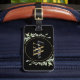 Chic Script Greenery Gold Monogram Black Luggage Tag