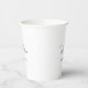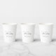 Elegant paper cups featuring a custom home or villa name in chic calligraphy script with a location line beneath. The clean white cup with delicate grey typography creates a sophisticated, modern look for entertaining at vacation homes, rental properties, or special events. All text is fully customisable.