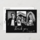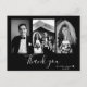 Classic wedding thank you postcard featuring a photo on the front and back, "Thank You" in a stylish white script font, and personal text thank you message.