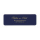 Chic script navy gold wedding return address label