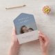 Modern dusty blue wedding all-in-one invitation. Your invitation overlays your photo and "Happily Ever After" is written on the inside top flap of the card in a mix of simple white typography and a chic white script. A tear away RSVP postcard provides a convenient response from your guests.