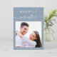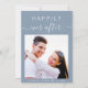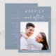 Modern dusty blue wedding invitation featuring your photo, "Happily Ever After" in simple white typography and a chic white calligraphy script with swashes and your first names and wedding date joined together by a heart. On the back, personalise your invitation in elegant white typography.